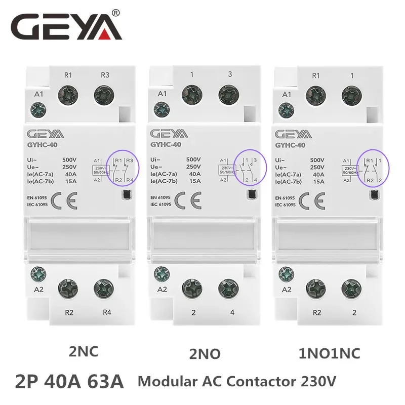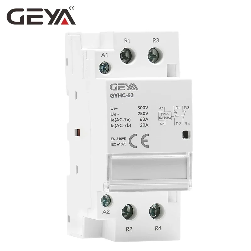 The GEYA 2P 40A 63A modular contactor is ideal for controlling lighting, heating, and ventilation systems. It also effectively manages roller shutters and public domestic hot water systems. Its exceptional performance remains unchanged even in low-load or micro-inductive load scenarios. Flexible enough to handle 220V or 230V AC systems, this device adapts to diverse operating requirements, providing customers with a versatile and efficient solution.
